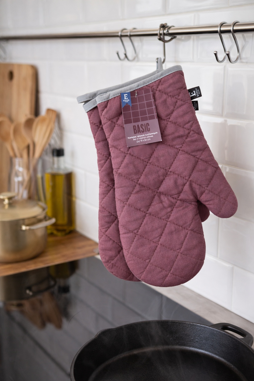 Rękawice kuchenne Basic w eleganckim, bordowym odcieniu to doskonały wybór dla osób ceniących klasykę i ponadczasowy styl. Głęboki kolor nadaje im wyrafinowanego charakteru, który świetnie komponuje się zarówno z nowoczesnymi, jak i tradycyjnymi wnętrzami.