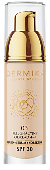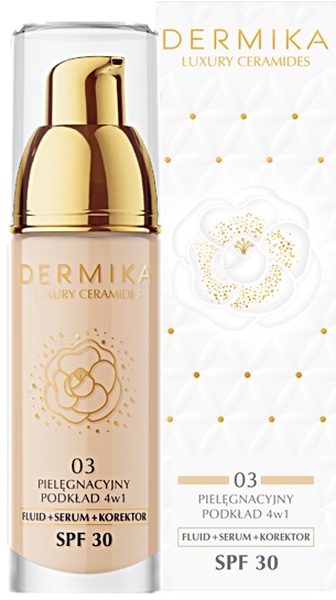 DERMIKA Luxury Ceramides 4w1 – Pielęgnacyjny podkład do twarzy z ceramidami, odcień 03, SPF 30, 30 ml