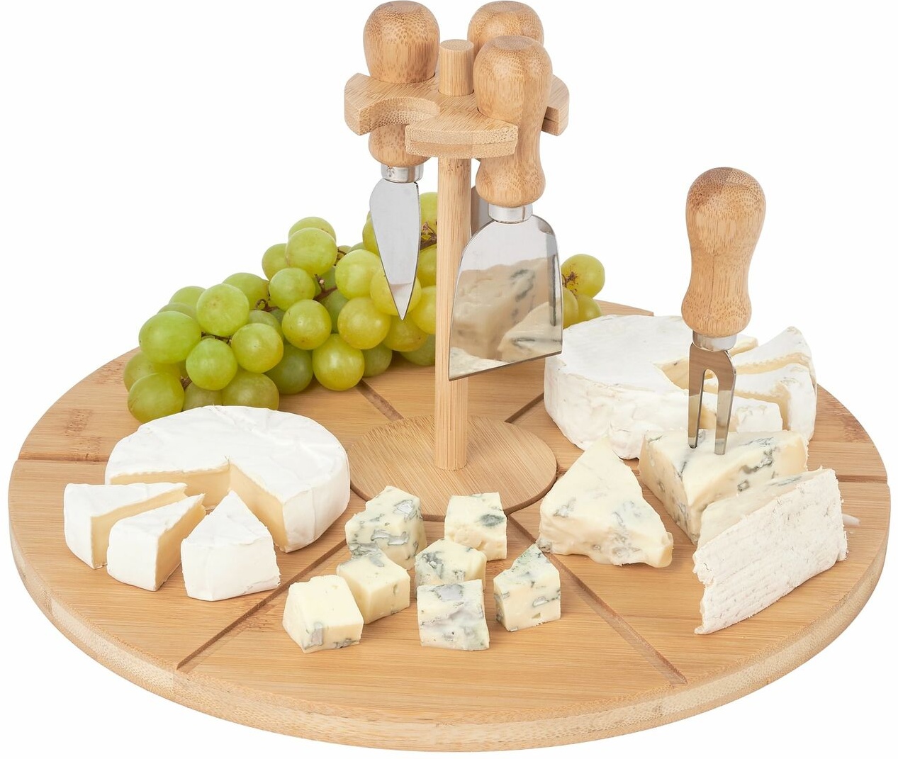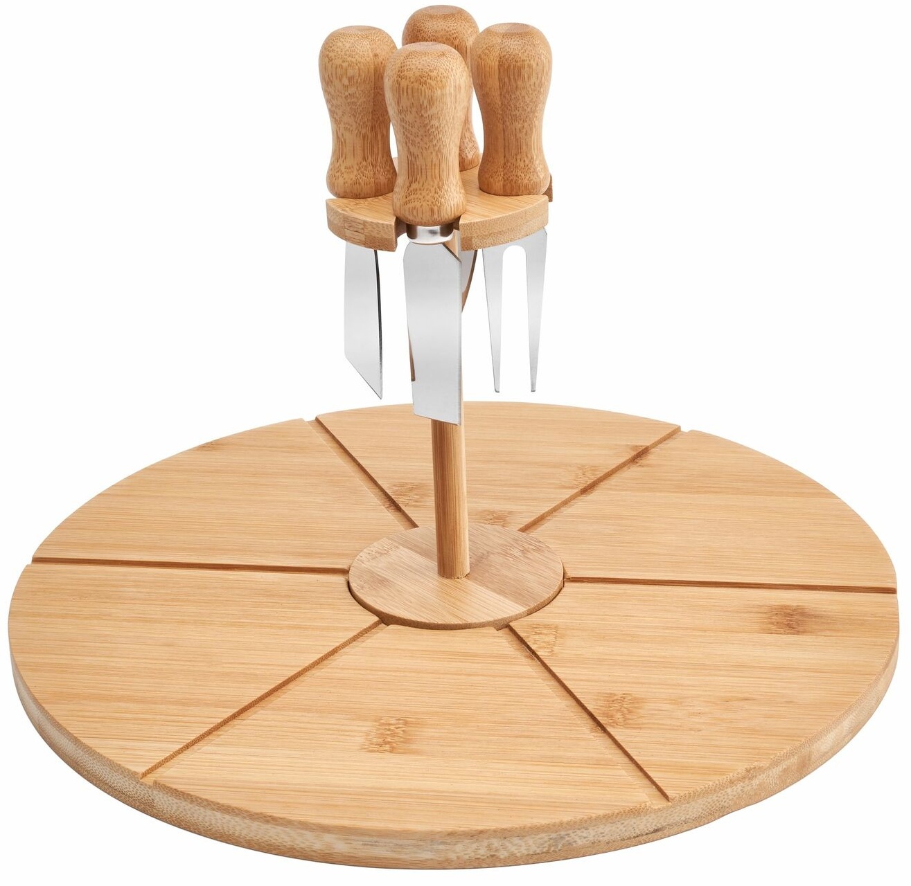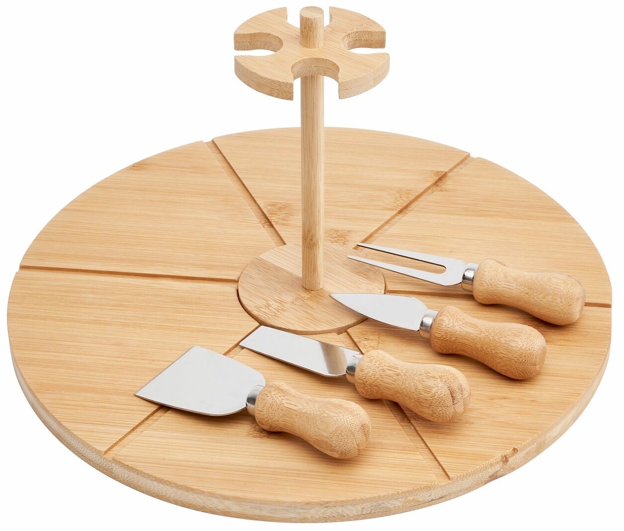 Deska do serów z 4 akcesoriami na stojaku Tadar 33 x 1,5 cm – bambusowa