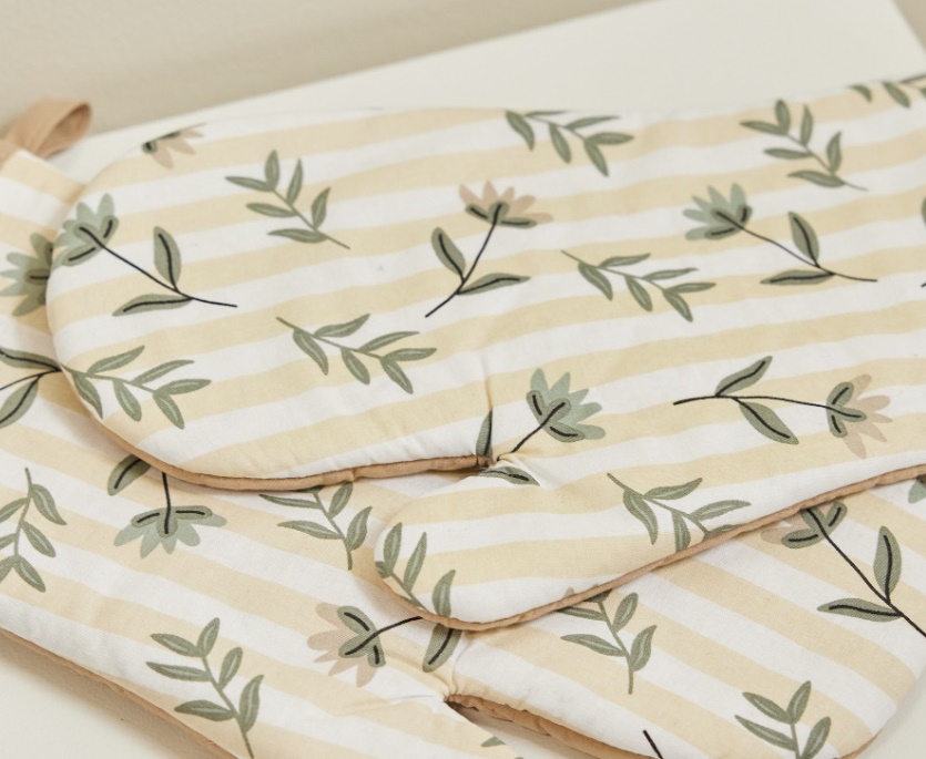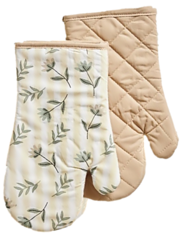 Dodaj subtelności i naturalnego uroku swojej kuchni z kompletem rękawic kuchennych "BLOOMY". Zestaw składa się z rękawic ozdobionych delikatnym kwiatowym wzorem na tle jasnych, pastelowych pasków. Rękawice idealnie łączą piękno i funkcjonalność, stanowiąc nie tylko praktyczne zabezpieczenie dłoni, ale również stylowy dodatek do wnętrza.