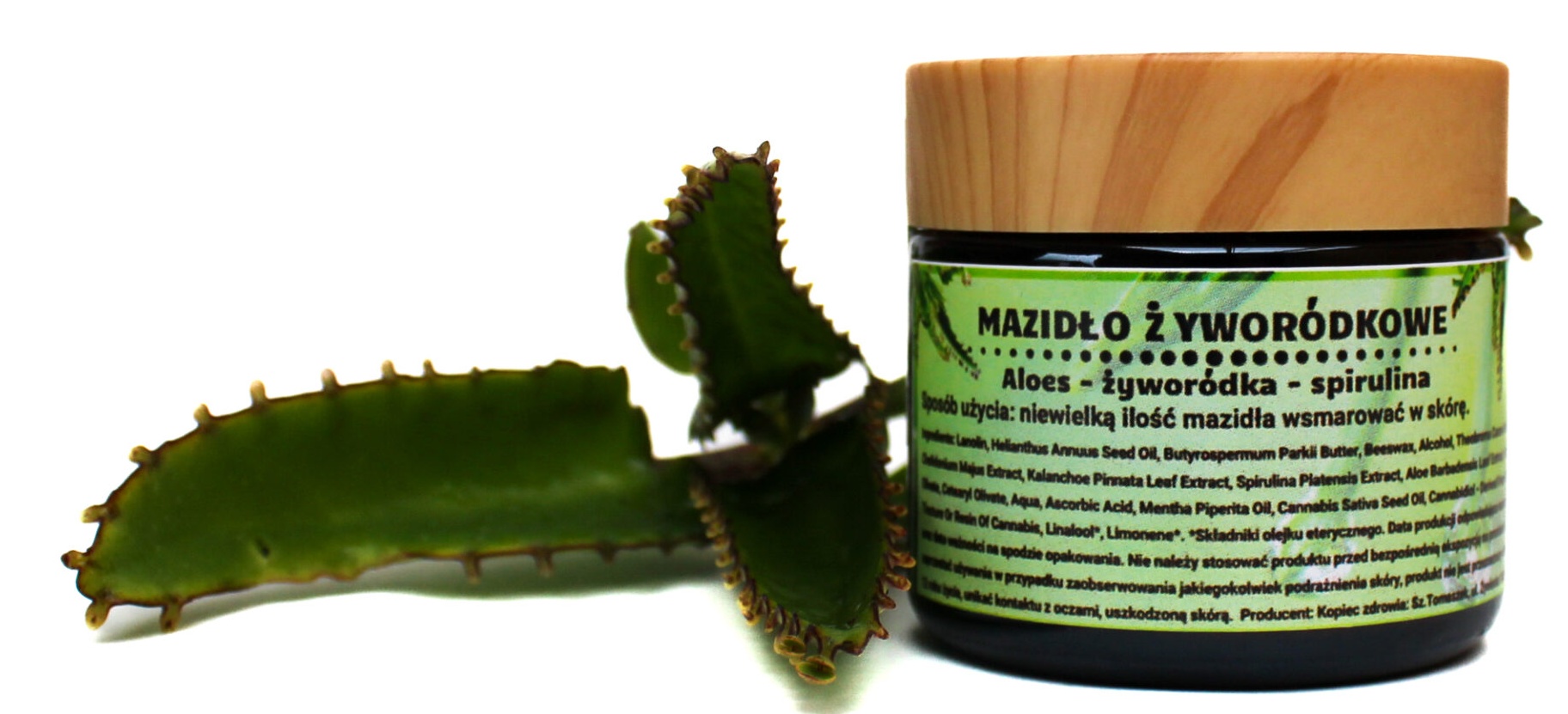 Mazidło Żyworódkowe to starannie opracowana mieszanka naturalnych składników roślinnych. W składzie znajduje się m.in. wyciąg z żyworódki pierzastej (Kalanchoe pinnata), aloesu, spiruliny oraz oleje roślinne i masła, które wspierają naturalne procesy odnowy skóry. Kosmetyk przeznaczony jest do użytku zewnętrznego, idealny do pielęgnacji skóry suchej, osłabionej, szorstkiej lub zmęczonej.