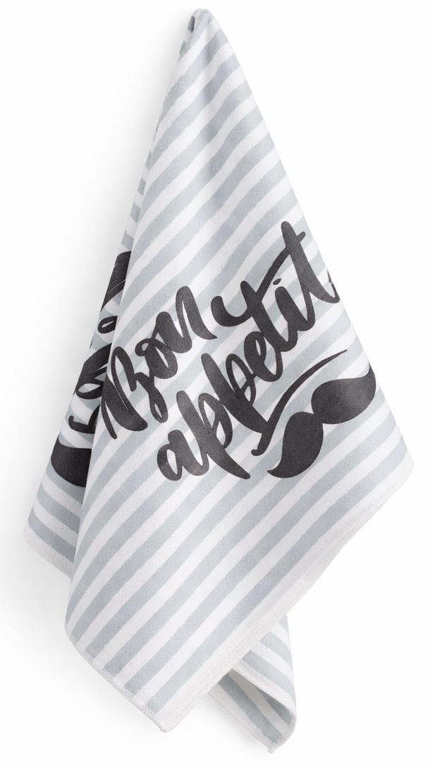 Ręcznik świetnie sprawdzi się podczas codziennych czynności kuchennych, a jego estetyka sprawia, że pełni również funkcję dekoracyjną.