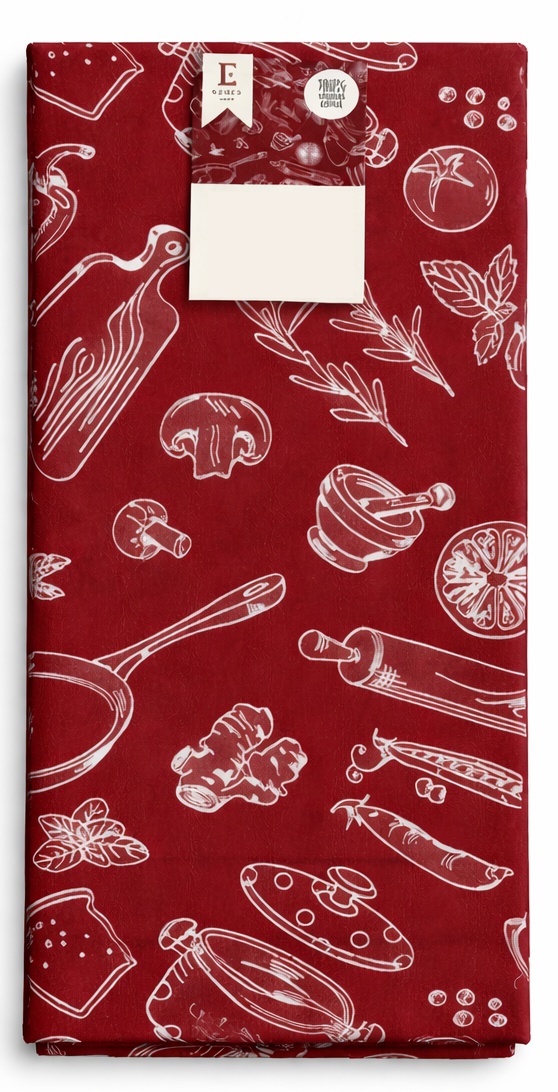 Wyrazisty, bordowy kolor w zestawieniu z białymi ilustracjami warzyw, przypraw i akcesoriów kuchennych tworzy wyjątkowy, tematyczny design. To doskonały wybór dla miłośników gotowania, którzy chcą podkreślić charakter swojej kuchni.
