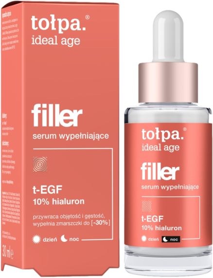 TOŁPA Ideal Age Serum to zaawansowany kosmetyk, który łączy dwa kluczowe działania: wspiera naturalne procesy regeneracji skóry oraz skutecznie wypełnia zmarszczki, poprawiając jej gęstość. Dzięki zawartości 10% kwasu hialuronowego, serum dostarcza intensywnego nawilżenia, a jego regularne stosowanie przynosi widoczne efekty wygładzenia skóry.