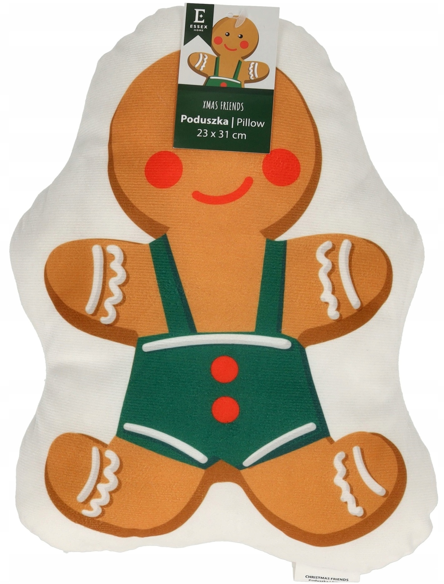 Poduszka XMAS FRIENDS w kształcie piernika to niezwykle efektowna dekoracja, która zachwyca swoim wyglądem i jakością wykonania.